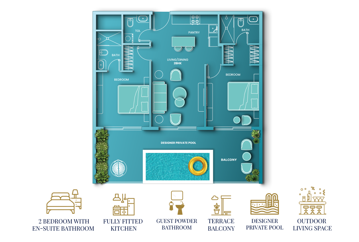 2 bhk with designer private pool